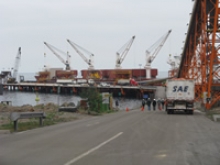 El proceso de descarga implicó el despacho directo de 200 fletes en camiones a la planta de alimentos y el resto de ella se realizará por sistema de cinta continúa a los tres silos, que fueron especialmente construidos para este objeto.