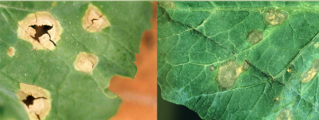 Foto 3. Alternariosis, causada por Alternaria brassicae (= A. brassisicola). Esta enfermedad puede alcanzar las silicuas.
