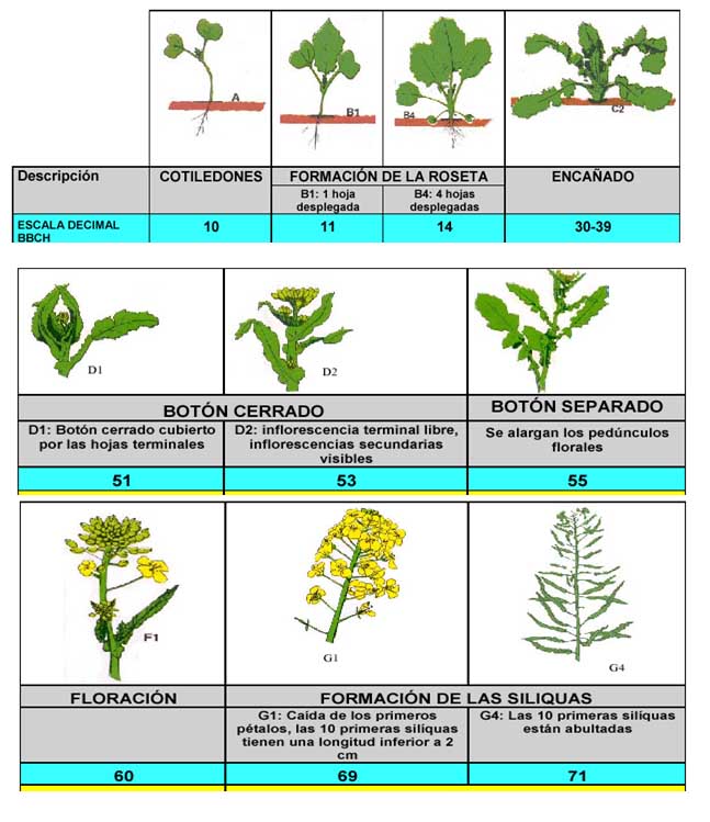 Esquema 1. Escala Decimal de BBCH de los estados reproductivos de las crucíferas