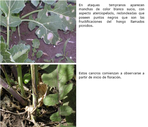 En cada una de las estaciones se determinará la presencia de plantas afectadas por Alternaria brassicae (= A. brassisicola), Phoma lingam (fotos 2 y 3), u otra enfermedad o síntoma. Cuando se tenga duda o se desconozca la sintomatología observada en el semillero, conviene tomar una muestra para su posterior observación visual o análisis en el laboratorio, de lo cual se dejará constancia en el Informe de Inspección.