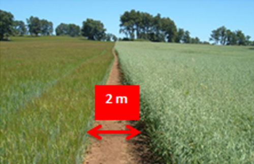 Ejemplo de aislación entre un semillero de trigo harinero y avena.
