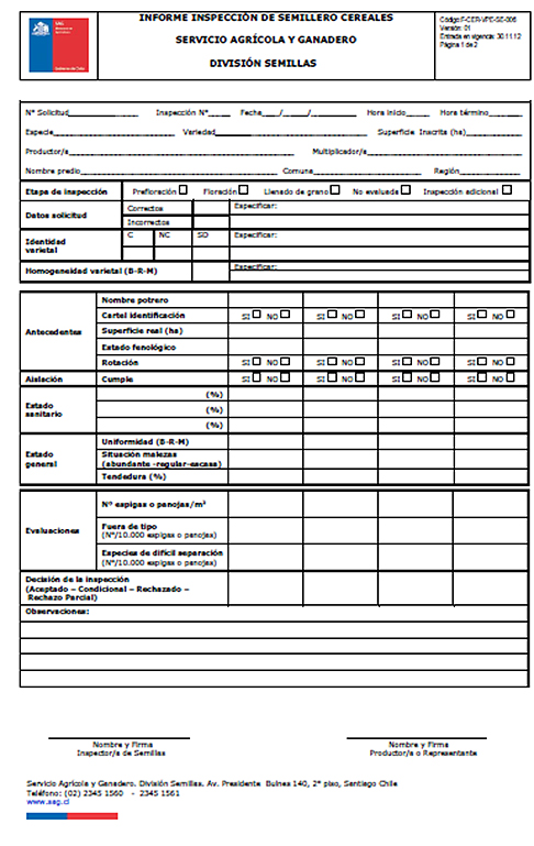 Informe de inspección de semilleros de cereales