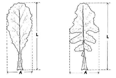 Hoja: longitud (L) y anchura (A)