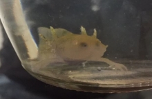 Se trataba de un casi imperceptible ajolote o axolotl (Ambystoma mexicanum), pequeño anfibio parecido a una salamandra, famoso a nivel mundial por su particular aspecto y capacidad de regeneración de sus extremidades. Originario de México, su población se encuentra en riesgo de conservación, razón por la cual se encuentra clasificado en Apéndice II de la Convención sobre el Comercio Internacional de Especies Amenazadas de Fauna y Flora Silvestres (CITES), acuerdo internacional que tiene por objetivo regular el comercio internacional de especies animales y de plantas silvestres, a fin de que dicho comercio no represente un riesgo para la supervivencia de tales especies.