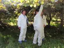 La actividad consiste en una inspección y colecta de muestras desde plantas de kiwi ubicadas en huertos comerciales, que puede incluir a especies tales como Actinidia deliciosa (kiwi verde), A. chinensis (kiwi amarillo) y A. arguta (baby kiwi).